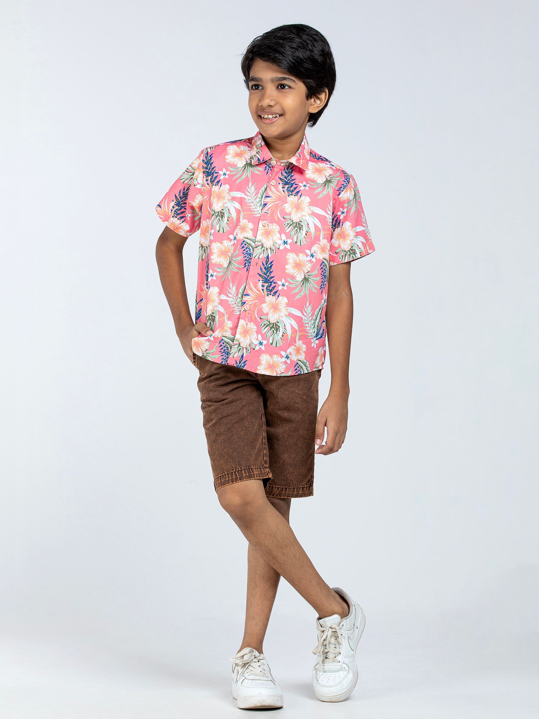 Pink Printed Cotton Shirt Pant Set